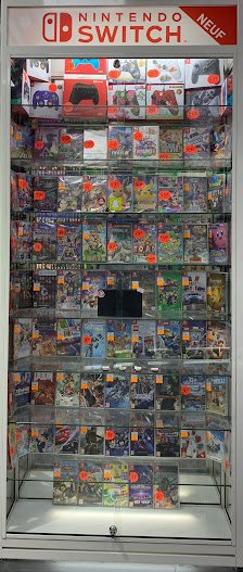 Vente et rachat de jeux video, consoles, accessoires et produits derives comme des figurines.